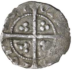 HENRY IV, (1399-1413), heavy coinage (1399-1413), halfpenny, pellet by crown, early small bust, mm cross ...
