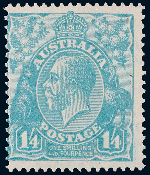 AUSTRALIA, KGV, small multiple wmk. perf 13 1/2x12 1/2, 1/4d turquoise, (SG 104). Mint off ...