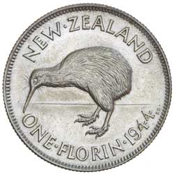 GEORGE VI, florin, 1944. Frosty mint bloom, uncirculated, a key date of the series.