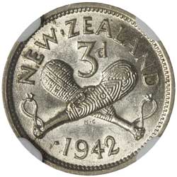 GEORGE VI, threepence, 1942, 'one dot' variety. Nearly uncirculated/uncirculated and rare as such.