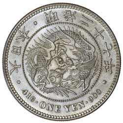JAPAN, Muhsuhito, silver yen, Meiji year 27 (1894) (KM.Y.25.3). Virtually uncirculated.