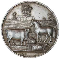 SEYMOUR AGRICULTURAL ASSOCIATION, instituted 1858, in silver (38mm), inscribed on reverse 'First Prize/For/Horses/Mr P.TIERNAN/1863'. Edge ...