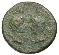 CORINTHIA, Corinth, Augustus, (31 B.C. - A.D. 14), AE As, issued 2-1 B.C., issued by C. Servilius and M. Antoninus Hipparchus, (6.36 g), obv. bare head of Augustus to right, CAESAR upwards to left, CORINT traces downwards to right, rev. heads of Gaius and Lucius Caesar facing each other around traces of C SERVILIO C F PRIMO M ANTONIO HIPPARCHO IIVIR,(S.166, Amandry Group XIa [obv.D11, rev.R8 [This Coin obverse illustrated], SNG Cop. 205, Lanz BCD Sale 105, lot 338). Portraits good fine, weak legends, rare.