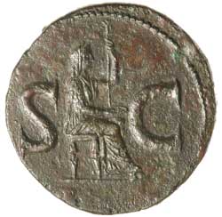 AUGUSTUS, (27 B.C. - A.D. 14), AE as, posthumous issue, Rome mint, issued under Tiberius, issued A.D. 15-16, (10.96 g), obv. radiate head of Augustus to left, around DIVVS AVGVSTVS PATER, thunderbolt in front, rev. S C across field, draped female figure seated to right, feet on stool, holding patera and long sceptre, (S.525, RIC 72, BMC 151). Slightly off centred on the obverse, chocolate brown patina, good very fine and rare.
