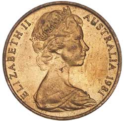 ELIZABETH II, twenty cents, 1981, three and a half claw variety. Nearly uncirculated.