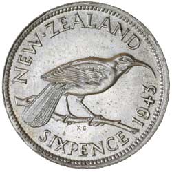 GEORGE VI, sixpence, 1943. Full frosty mint bloom, uncirculated.