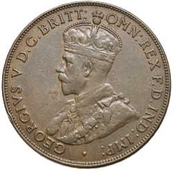 GEORGE V, 1925 London die. Q die state, even, dark red brown patina, nearly extremely ...