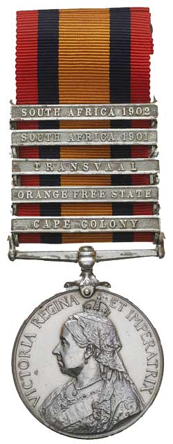 QUEEN'S SOUTH AFRICA MEDAL 1899, (type 3 reverse), - five clasps - Cape Colony, Orange ...