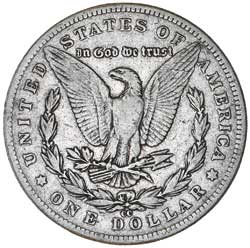 USA, MORGAN DOLLAR, 1889CC. Grey and gold patina, dark tone in lettering and devices, very good.