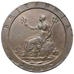 GEORGE III, second issue, Soho Mint, Birmingham cartwheel penny, 1797 (S.3777), fourth issue, Soho Mint, ...