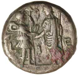 EGYPT, Alexandria, Hadrian, (A.D. 117-138), billon tetradrachm (25mm), (12.67 g), dated year 15 = 130-1 A.D., obv. AVT KAI [TPAI A**D*PIANOC], laureate, draped and cuirassed bust right, seen from behind, rev. Hadrian standing left, holding sceptre and clasping hands with Alexandria standing right, holding vexillum, L I E (date) between, (S.3736, Koln 1027, Dattari 1267, Milne 1294-1296). Toned, very fine and very scarce.