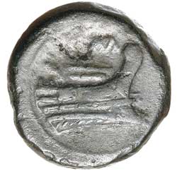REPUBLIC, Anonymous (semilibral) series, (c.217-215 B.C.), Rome mint, AE semuncia, (5.50 g), obv. head of Mercury to right wearing winged petasus, rev. prow to right, ROMA above, (S.620, Cr.38/7, Syd.87). Deep patina, nearly very fine and scarce.