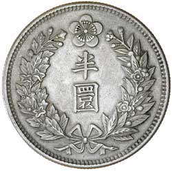 KOREA, silver coinage, Kuang Mu, half won, year 9 (1905) (KM.1129); another year 11 (1907) ...