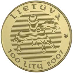 LITHUANIA, Republic, proof one hundred litu, 2009LMK (KM.166). FDC, in box of issue with certificate. ...
