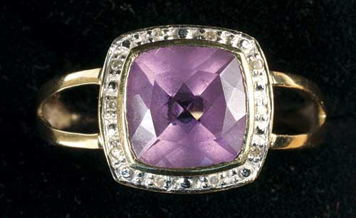 AMETHYST AND DIAMOND DRESS RING, in 9ct gold (tot wt 2.56g), with a cushion cut ...