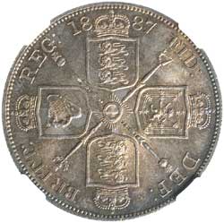 QUEEN VICTORIA, Jubilee coinage, double florin, Arabic 1, 1887 (S.3923). Underlying brilliance, with blue and ...