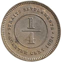 STRAITS SETTLEMENTS, Queen Victoria, quarter cent, 1884 (KM.7a). Trace of mint red, otherwise good extremely fine/uncirculated and rare in this condition.