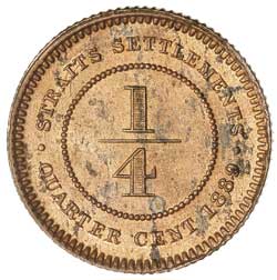 STRAITS SETTLEMENTS, Queen Victoria, quarter cent, 1889 (KM.14). Full mint red, uncirculated and rare in this condition.