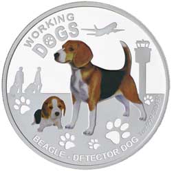 TUVALU, Elizabeth II, Perth Mint, proof silver and coloured one ounce one dollars, Working Dogs Series, Beagle Detector Dog 2011, In plastic capsules without cases, FDC. (24)