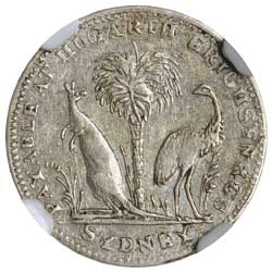 HOGARTH, Erichsen & Co., Sydney silver threepence, 1858 (A.688). Nearly extremely fine and rare thus. ...
