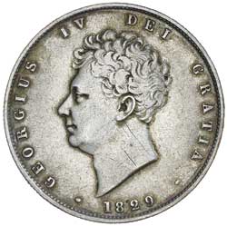 GEORGE IV, halfcrown, bare head, reverse crowned shield with crest, 1829 (S.3809). Toned, nearly very fine.