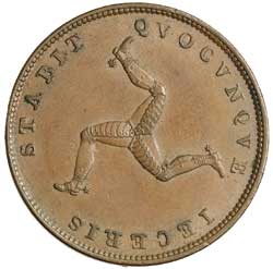 IRELAND, George II, halfpenny, type III, 1750 (KM.130.2); farthing, 1769 (KM.135); George III, halfpenny, 1769 (KM.137); 1796 (KM.137); Isle of Man, Queen Victoria, halfpenny, 1839 (S.7418) (illustrated). Toned, fine - extremely fine. (5)
