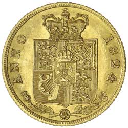 GEORGE IV, half sovereign, laureate head left, reverse plain shield, 1824 (S.3803). Nearly uncirculated/uncirculated and ...