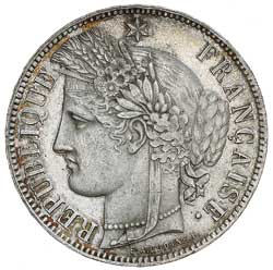 FRANCE, Third Republic, silver five francs 1870A, (KM.819). Good very fine/ nearly extremely fine, scarce. ...
