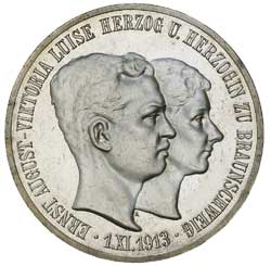 GERMANY, Brunswick-Wolfenbuttel, Ernst August (1913-1918), silver three mark, 1915A, Ernst August wedding and Accession, with ...