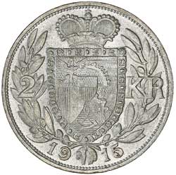 LIECHTENSTEIN, Prince John II, silver one krone 1900 (KM.Y2); silver two kronen 1915 (KM.Y3) (illustrated). Both nearly uncirculated, first lightly toned. (2)