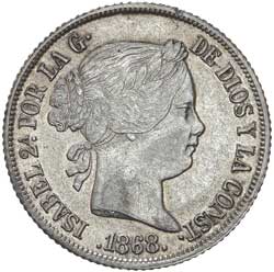 PHILIPPINES, Isabel II, fifty centimes, 1868 (KM.147). Peripheral tone, good extremely fine.