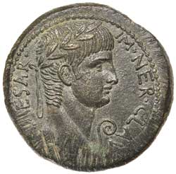 SYRIA, Antioch, Roman Provincial coinage under Nero (54-68 A.D.), AE 30mm,(15.22 g), obv, around IM NER CLAV - CAESAR, laureate head right, in front, lituus, dotted border, rev. SC in laurel wreath, dotted border, (cf.S.619, RPC 4307, SNG Cop 158, BMC 177-8, Butcher 125). Dark green patina, of exceptional condition, nearly extremely fine and rare as such.