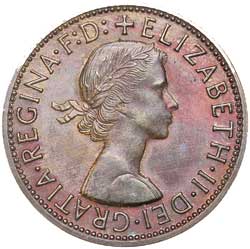 ELIZABETH II, Perth Mint proof penny, 1956. Faded brilliance, crimson brown tone, good extremely fine and rare.
