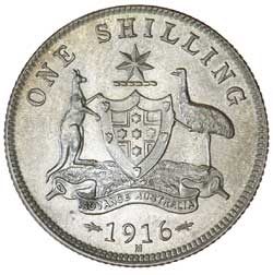 GEORGE V, 1916M. Reverse die flashes, uncirculated/choice uncirculated.