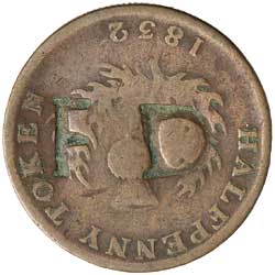 BRITISH WEST INDIES, Trinidad, Francois Declos tokens, F.D. countermarked on Nova Scotia halfpenny, 1832 and ...
