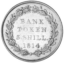 GEORGE III, Bank of England, three shillings token 1814 (S.3770). Extremely fine.