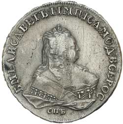 RUSSIA, Elizabeth, silver rouble, 1753 St Petersburg (KM.C.19b.5, D.1677). With carbon flaking on reverse, good ...