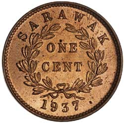 SARAWAK, Rajah C.V.Brooke, one cent, 1941H (KM.18). Die break between A K on reverse, obverse ...