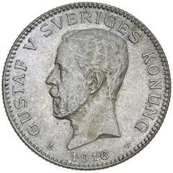 SWEDEN, Gustaf V, silver one krona, 1916W, 1927G, (KM.786.1, 786.2). With mint bloom, second lightly toned nearly uncirculated. (2)