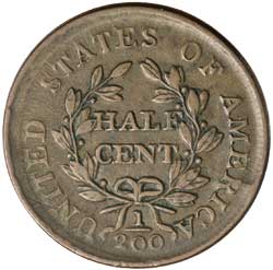 USA, HALF CENT, draped bust, 1804, crosslet 4, stems. Nearly very fine.