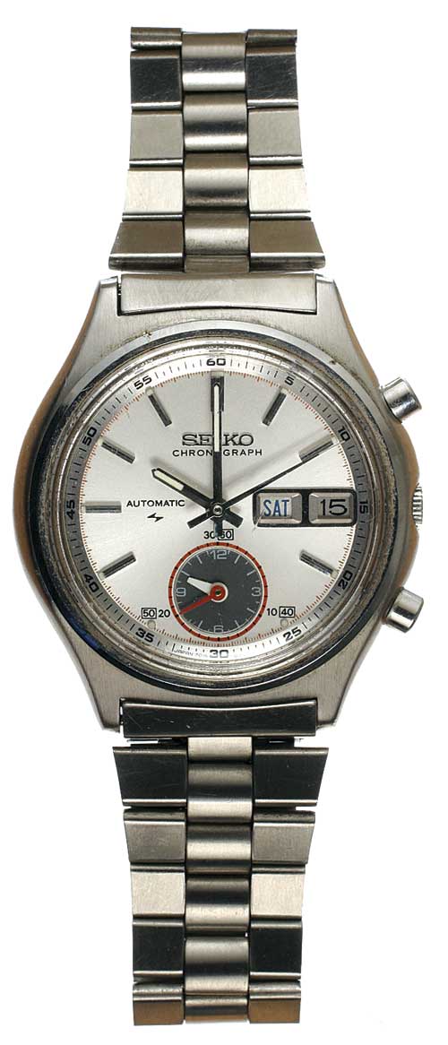 SEIKO, a very good Seiko Vintage mens steel chronograph wristwatch. Case reference: 7016-8001. Case serial number 3N0116. Working condition. Case, movement, dial and bracelet signed. Overall condition excellent but glass slightly scratched.