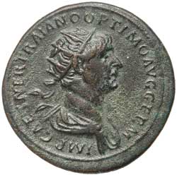 TRAJAN, (A.D. 98-117), AE dupondius, Rome mint, issued A.D. 116, (13.84 g), obv. radiate draped ...