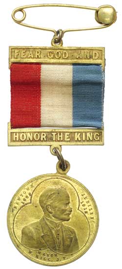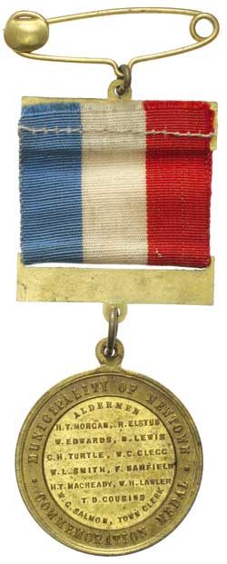 DEPARTURE OF N.S.W. Troops for the Soudan, 1885, in silver (24mm) (C.1885/12), with suspension loop; Newtown Jubilee, 1912, in gilt bronze (31mm) (C.1912/2), with ribbon on suspension bar and brooch bar with die struck words, 'Fear God And/Honor The King'; First Crossing of the Blue Mountains, 1913, in gilt bronze (23mm) (C.1913/2), with ribbon on suspension bar and top suspension bar with loop with die struck words, 'Fear God And/Honor The King'; Gallipoli to Commemorate the Landing, 1915, in silvered bronze (25mm) (C.1915/7), by Prouds Ltd, with suspension loop; Honor to Splendid Men of A.I.F., 1914-18, in gilt bronze (27mm) (C.1914-18/2), with suspension loop; 'Victory/1918' badge in running script on a gilt and blue enamelled, pin-back, oval brooch bar (35x13mm); Fifty Years Commonwealth of Australia, 1951, in gilt bronze (31mm) (C.1951/6), with suspension loop and ribbon; Freedom Medallion, 1995, in bronze (27mm). Very fine - extremely fine. (8)