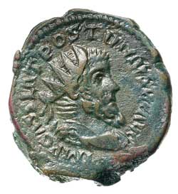 POSTUMUS, (A.D. 259-268), AE double sestertius, Cologne mint, issued 261, (14.32 g), obv. radiate draped and cuirassed bust of Postumus to right, around IMP C M CASS LAT POSTVMVS P F AVG, rev. galley with rowers travelling to left over waves, LAET[ITIA] around, AVG in exergue, (S.11049, RIC 143, C.177, Bastian 81, 87); dupondius, Lugdunum mint, issued 266-7, rev. Victory advancing left carrying wreath & palm, (cf.S.11064, RIC 235, C 391); dupondius, Cologne mint, issued 261-263, rev. soldier standing right, holding spear and leaning against shield, (S.11070, RIC 239, C 438); Claudius II Gothicus, (A.D. 268-270), antoninianus, Mediolanum mint, issued, 270, rev. garlanded altar with flames above, (S.11463, RIC 261, C 50). Toned, nearly very fine - very fine. (4)