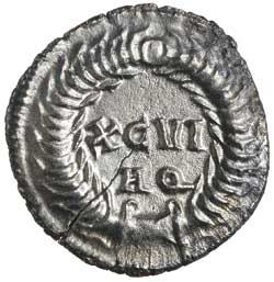 GALERIUS MAXIMIAN, as Caesar, (A.D. 305-311), silver argenteus, Aquileia mint, struck 300 A.D., (3.13 g), obv. laureate head to right, around MAXIMIAN VS CAESAR, rev. XCVI AQ in two lines within wreath, (S.14286, RIC 17b, RSC 250b). Toned, flan crack, otherwise very fine or better and very scarce.