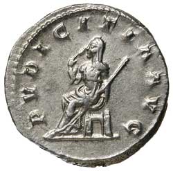 ANCIENT ROMAN, silver Antoninianii, Philip I, (A.D. 244-249), issued 244, (4.82 g), obv. radiate bust to right, around IMP C M IVL PHILIPPVS P F AVG P M, rev. Pax standing facing with branch and sceptre, around PAX FVN-DATA CVM PERSIS, (S.8941, RIC 69, RSC 113); Philip I, (A.D. 244-249), Rome mint, (3.78 g), obv. radiate bust to right, around IMP PHILIPPVS AVG, rev. around CONCORDIA AVGG, Concordia seated left, holding patera and cornucopia, (S.9263, RIC 241, C 8); Herennia Etruscilla, (wife of Trajan Decius), (A.D. 249-251), Rome mint, issued 250, (3.87 g), obv. diademed draped bust to right on crescent, around HER ETRVSCILLA AVG, rev. Pudicitia seated to left drawing veil from face holding transverse sceptre, around PVDICITIA AVG, (S.9495, RIC 59b, RSC 19) (illustrated); Gallienus, (A.D. 253-268), Colonia Agrippinensis (Cologne) mint, (3.12 g), obv. radiate bust to right, around GALLIENVS P F AVG, rev. VICT GERMANICA, Victory standing on globe between two captives, (S.10379, RIC 49, RSC 1063). Toned, good very fine - extremely fine, some rare. (4)