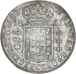 BRAZIL, John VI, 960 reis 1817B, struck over eight reales (KM.307.1). Good very fine.