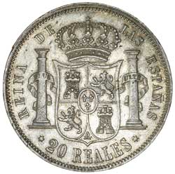 SPAIN, Isabella II, twenty reales, 1862, six pointed stars (KM.609.2). Toned, very fine/good very fine. ...