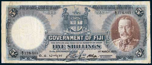 FIJI, Government of Fiji, George V, five shillings, 1st March 1935, B/1 176,861 (P.31c). Very ...