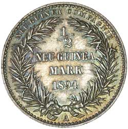 GERMAN NEW GUINEA, silver half mark, 1894A. Collector's number painted on reverse near bottom edge, otherwise toned, good extremely fine.
